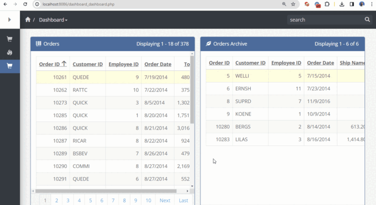 In this article we will show how you can apply Drag-N-Drop between two dashboard elements. It makes more sense to drag and drop notes between two lattice. In this example we will use two tables named order And Orders_archive.