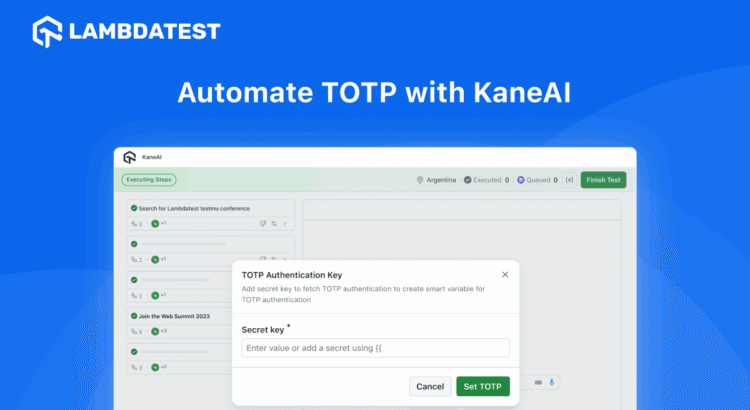 Testing applications with two factors authentication becomes easy. AI Lambdatest testing tool, Kaneai now supports the authentic authentication of time -based passwords (TOTP) for web and cellular applications. You can now write and re -play the login flow protected by OTP without requiring an external server or writing a special code. This feature is smoothly integrated into the existing test line, making a safe application testing as simple as a regular login flow test.